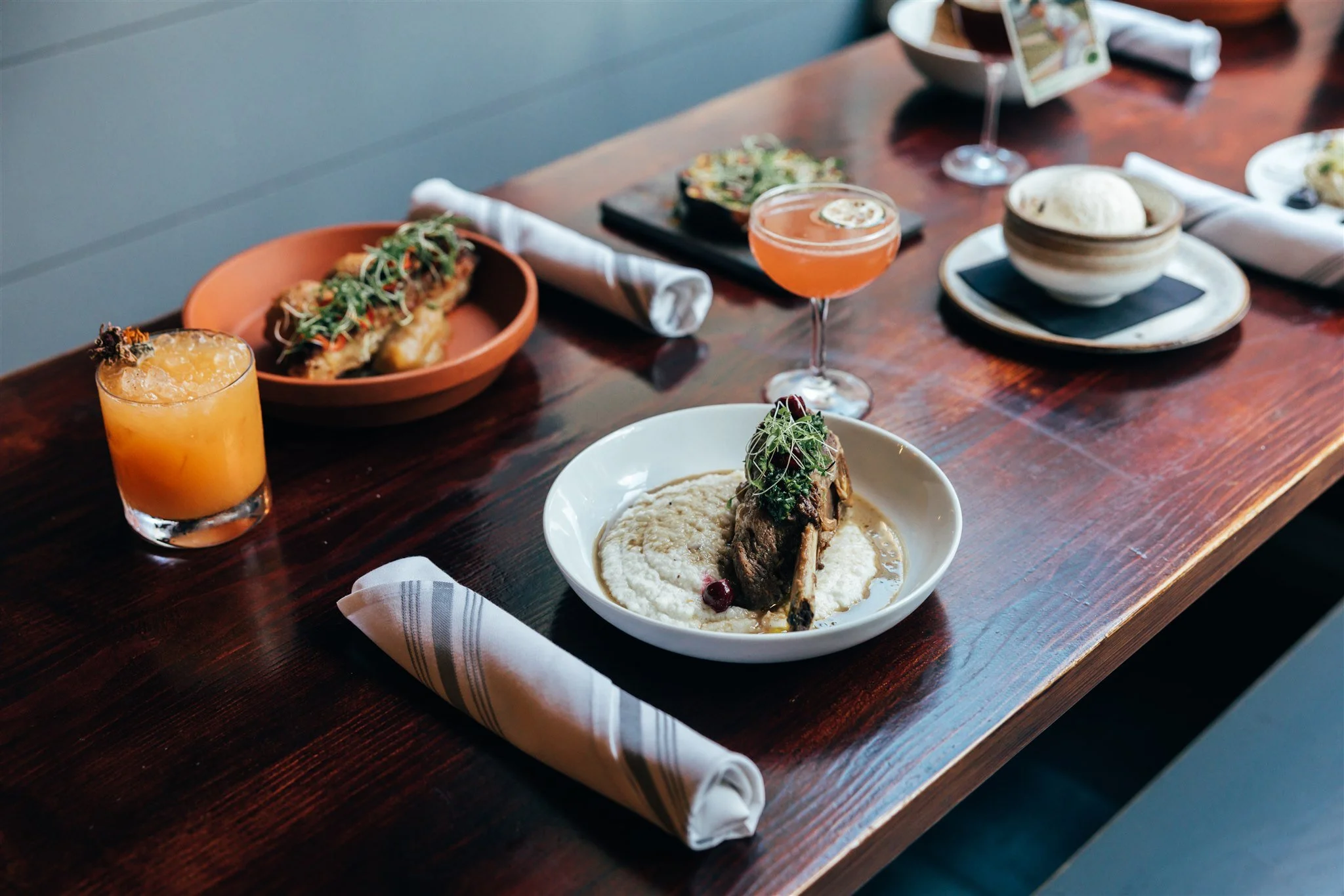cranberry preserves, pepita pesto, pickled apples, burnt leek oil